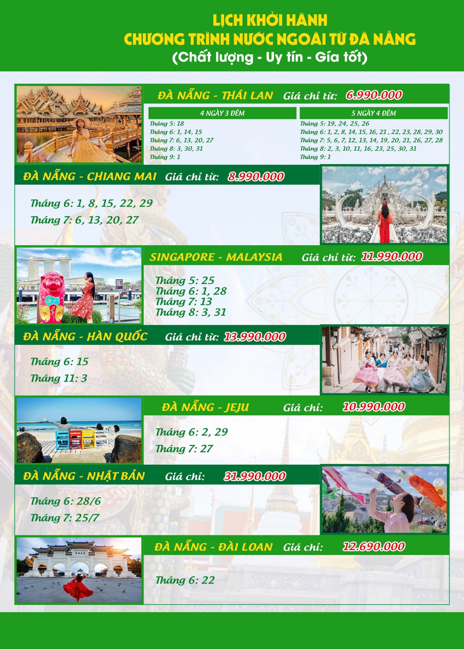 VIE TOUR KÍNH GỬI QUÝ KHÁCH HÀNG BẢNG GIÁ TOUR NƯỚC NGOÀI T6